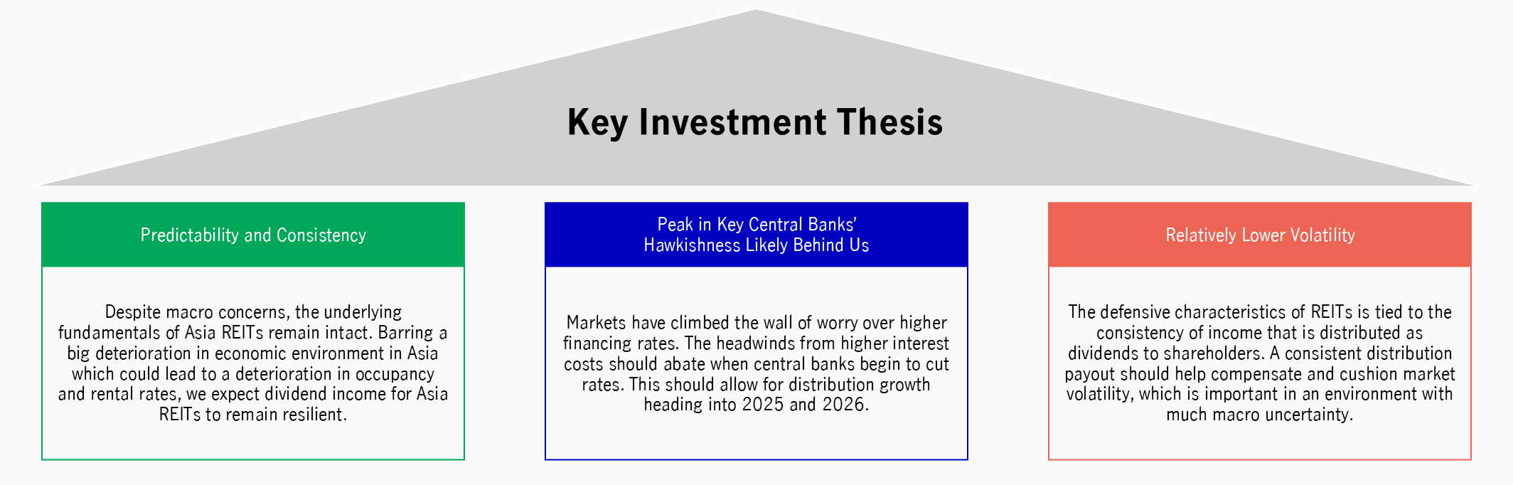 Source: Bloomberg, as of 29 September 2025. Asia ex Japan REITs represented by FTSE EPRA/NAREIT Asia ex Japan REITs Index (capped) in USD. Past performances are not an indication of future performances.
