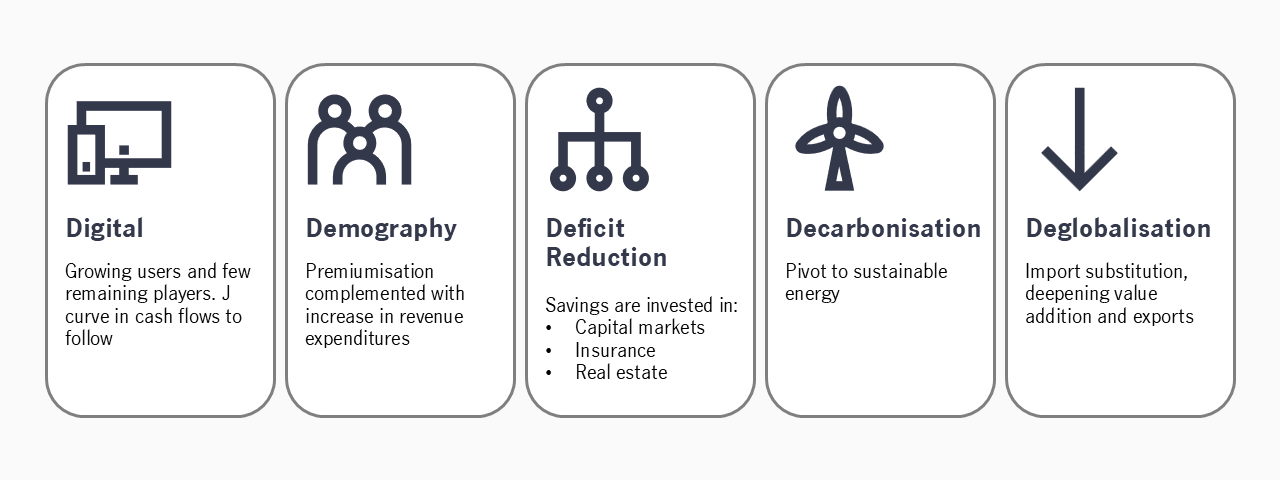 Paradigm shift - Lower deficit higher savings, and investments can lead to potential productivity-led growth.