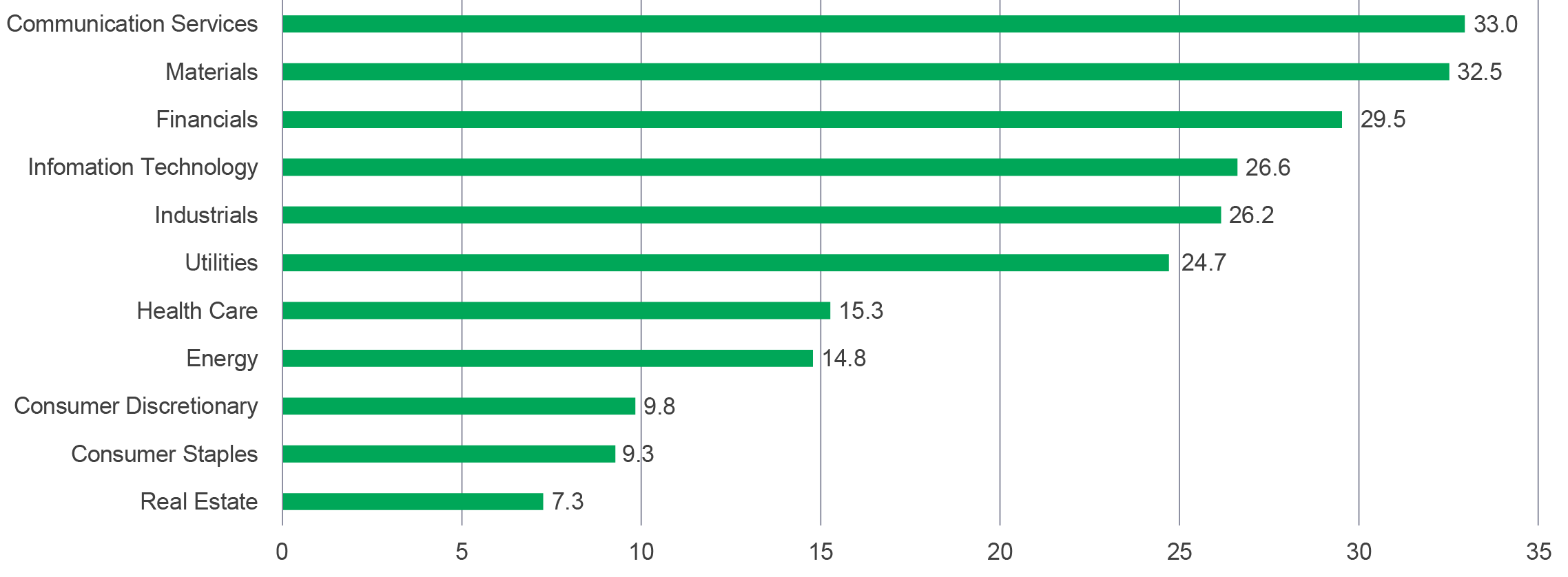 Chart 2: 2025 global equity sector cumulative performance (%)1