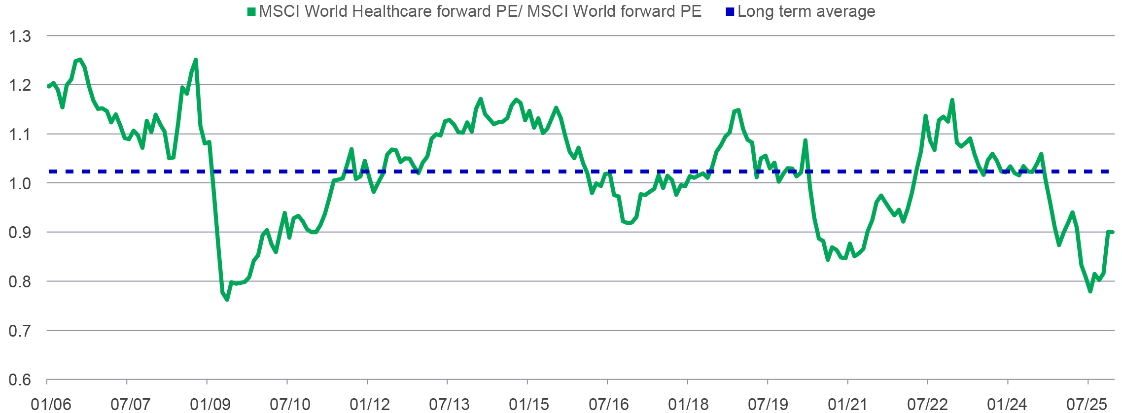 Chart 3: Healthcare sector traded at a meaningful discount to broader markets