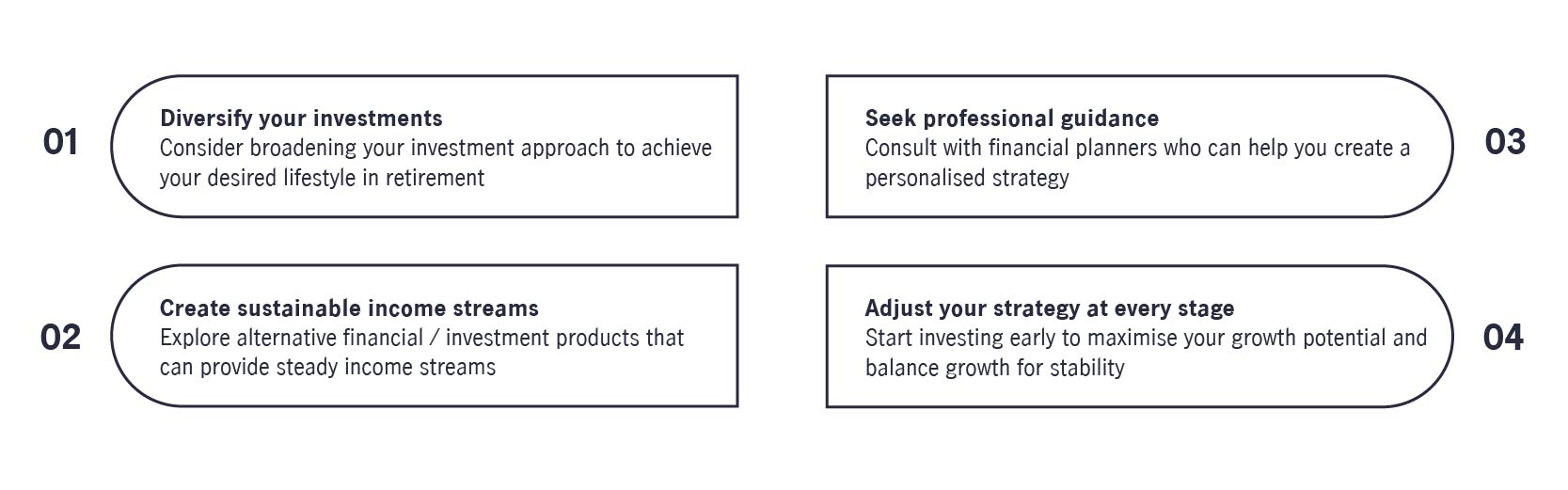 Our financial advisers are ready to help you turn life goals into achievable income strategies. With access to tailored funds, expert guidance and consistent planning, you will have the clarity and confidence to move forward with purpose.